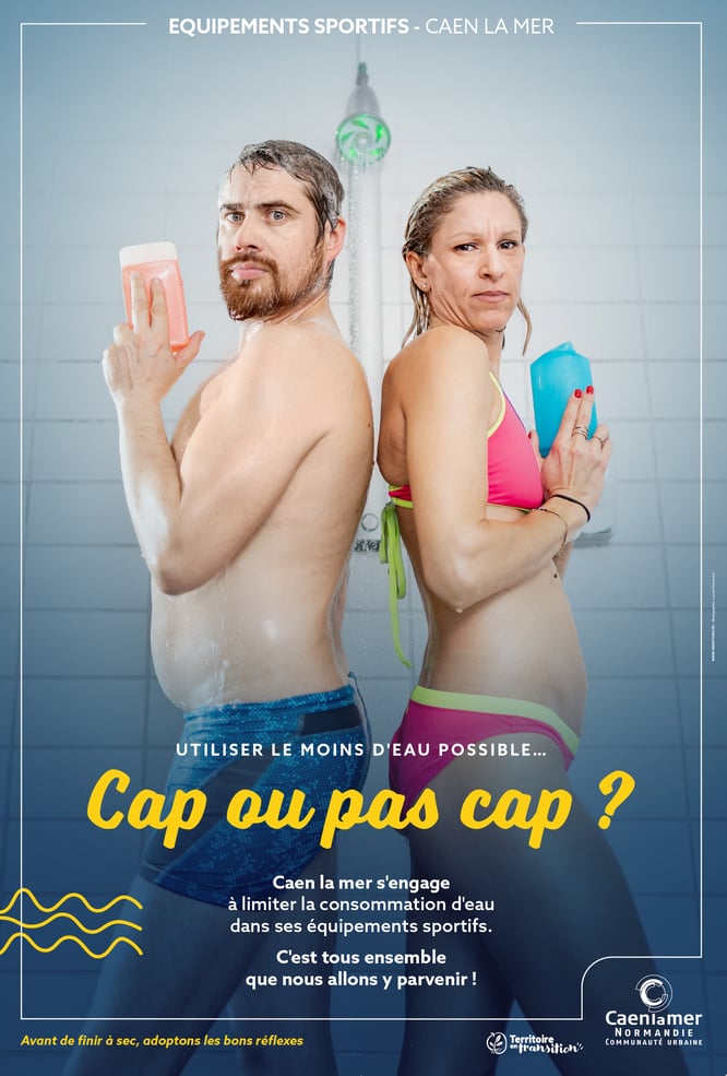 Caen la mer s'engage à limiter la consommation d'eau dans ses équipements sportifs avec la pose de pommeaux de douche ludiques et intuitifs. Objectif : informer et responsabiliser les utilisateurs.