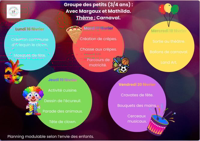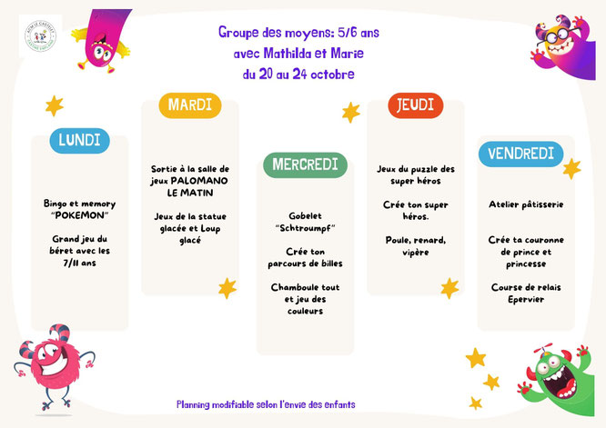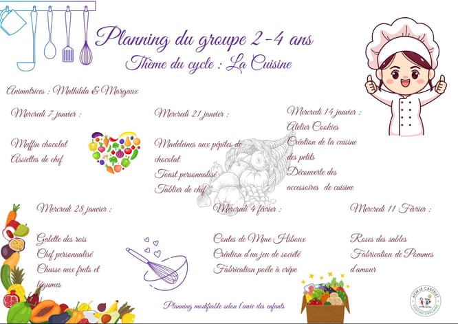 Les inscriptions se font à la journée avec repas, et 3 jours minimum de présence par semaine.